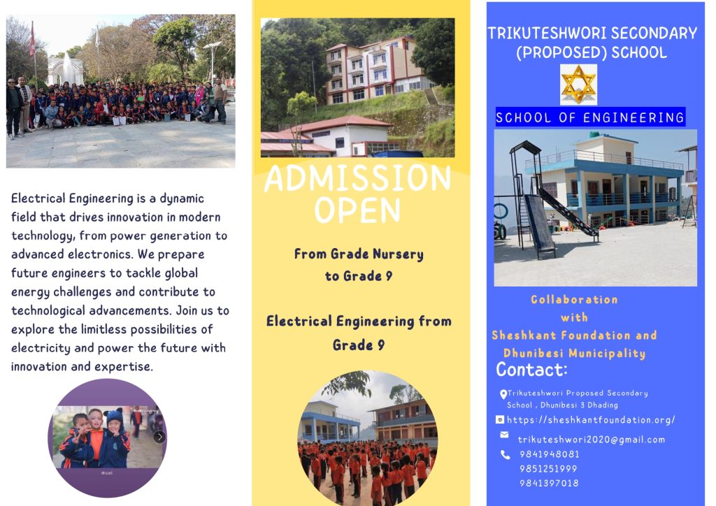 The Sheshkant Foundation is proud to announce its partnership with Dhunibesi Municipality, Dhading, to support the operation of a technical school at the Shree Trikuteshwori Secondary (Proposed) School. This collaboration aims to provide high-quality vocational education and skill development opportunities for the youth in Dhading, helping them become more equipped to thrive in the modern job market. By offering specialized technical training alongside traditional education, the initiative will empower students with practical skills that will open doors to better employment prospects, ultimately benefiting the local community and contributing to economic growth in the region.